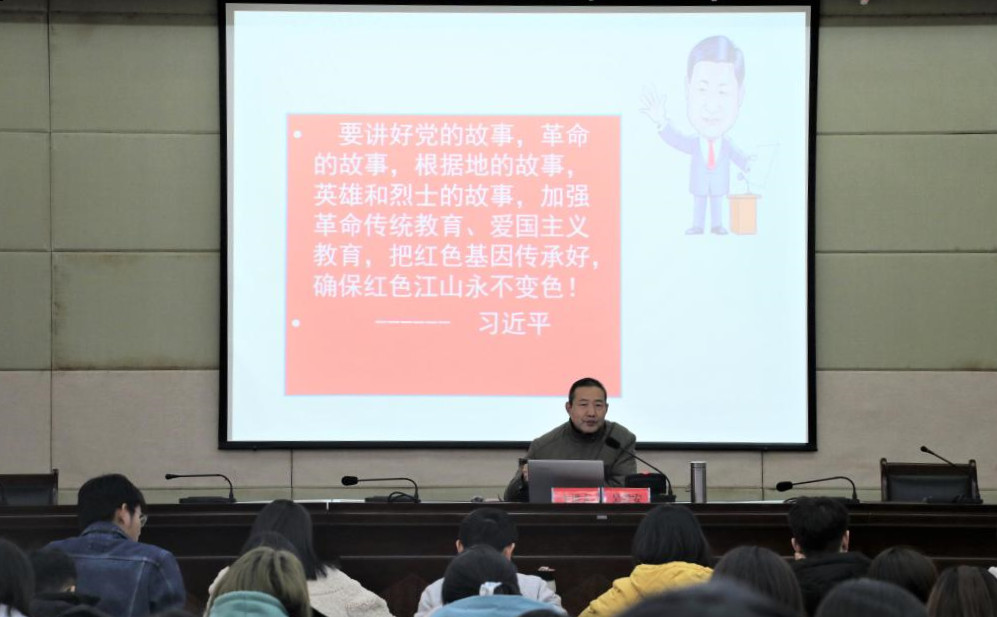 “要讲好党的故事,革命的故事,根据地的故事,英雄和烈士的故事,”吴毅安引用习近平总书记的话作为开场白,通过回顾充满血与泪的抗日战争史,向学员们讲述了安徽青年学生抗日救亡工作队队员们克服路途遥远、亲人阻挠、土匪劫掠种种困难,通过戏剧、漫画等新颖的方式宣传、动员民众抗日救国,致力于“把抗日火种播撒在江淮大地上”的故事。