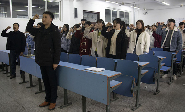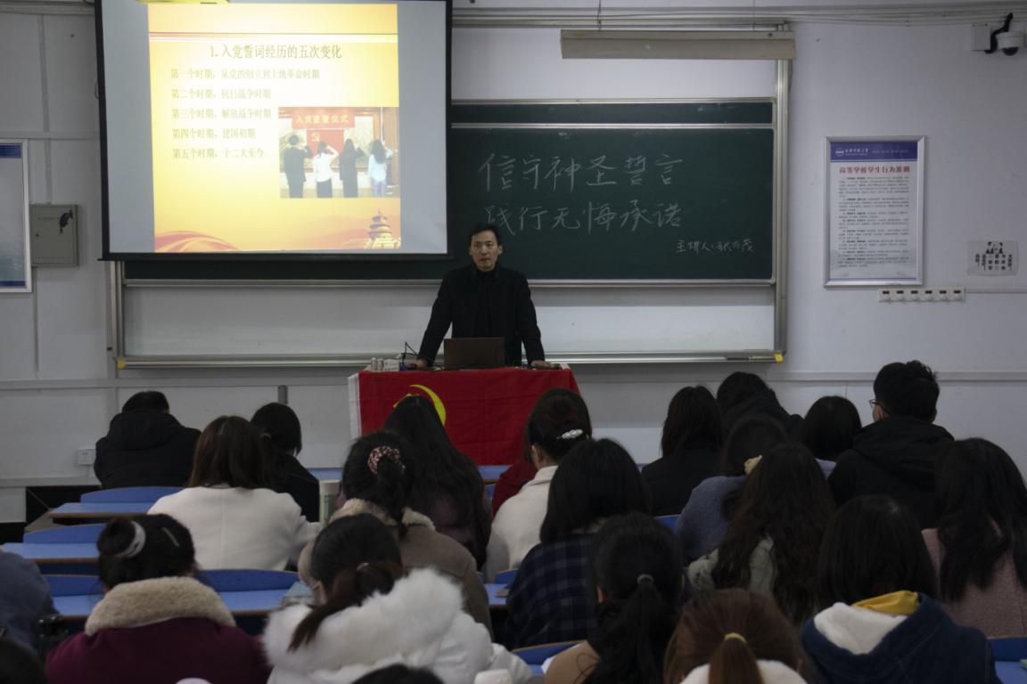 党课伊始,举行了新党员入党宣誓和老党员重温入党誓词活动。(撰稿:学生记者 齐佩 摄影:学生记者 符芳敏 审核:张万茂)
