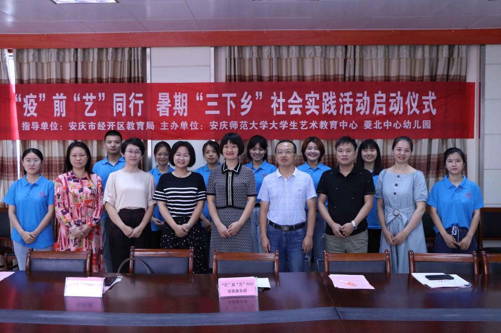 7月21日上午,学校“疫”前“艺”同行暑期“三下乡”实践团队一行9人前往安庆市菱北中心幼儿园开展艺术支教活动。