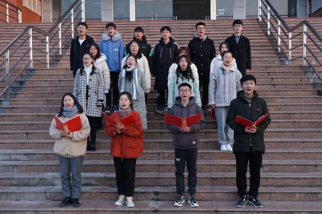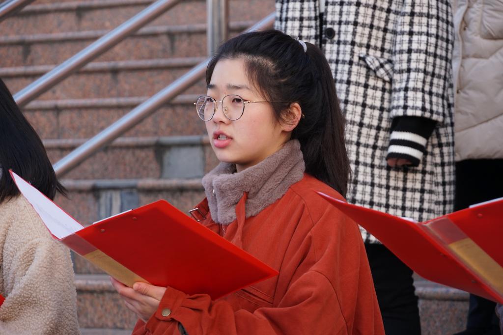 12月21日早晨7点,室外温度零下1℃,beat365官网龙山校区逸夫图书馆的阶梯上聚集了18位穿着整齐、大声诵读古诗词的学生。这些学生正在参加由学校图书馆主办、大学生朗诵协会协办的“冬至晨诵”活动。