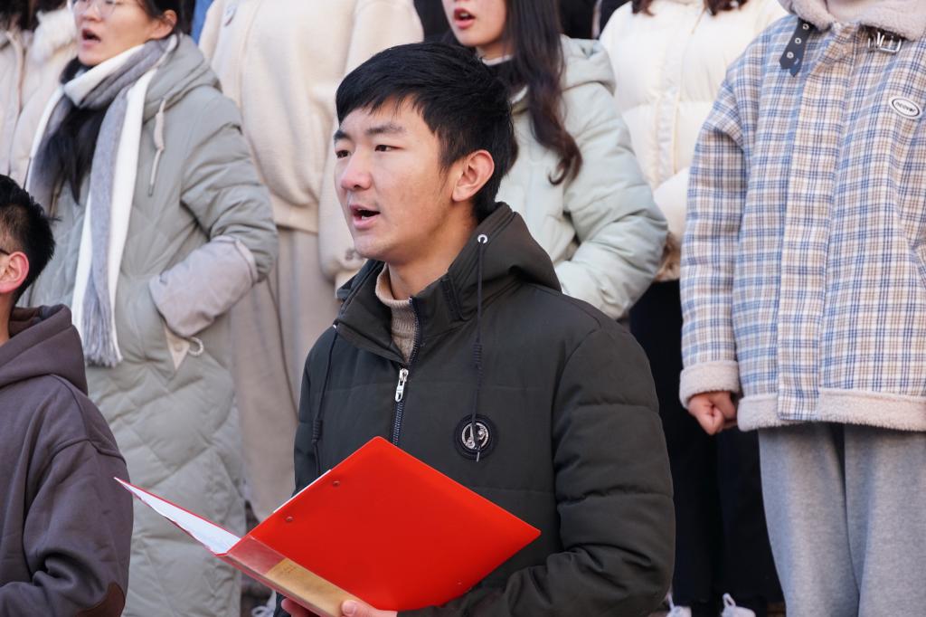 据活动负责人、法学专业2019(3)班的曹李介绍,本次活动以“冬至”为主题,以《绝句》《别董大》《江雪》等6首古诗词为诵读内容。从时间地点的确定、人员安排到实地排练、节奏配合,协会成员准备了近一个星期,在正式朗诵前共进行了3次彩排。