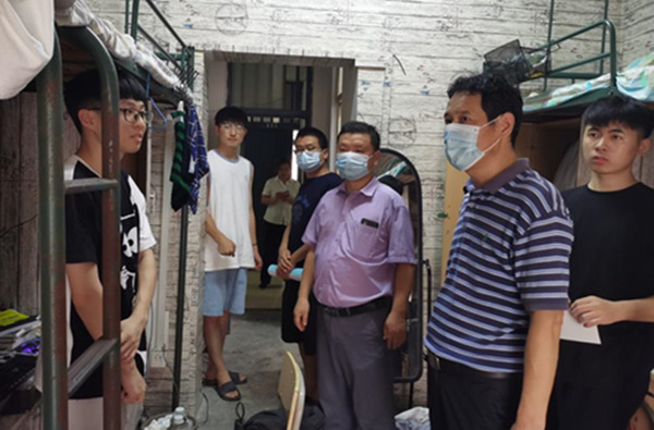 为确保秋季学期开学学生新冠肺炎疫情防控工作落到实处,及时了解学生返校后的思想动态和学习生活情况。8月26日下午,电子工程与智能制造学院党委书记江贵生、院党委副书记邹斌和专职辅导员深入学生宿舍走访调研。
