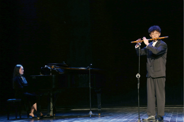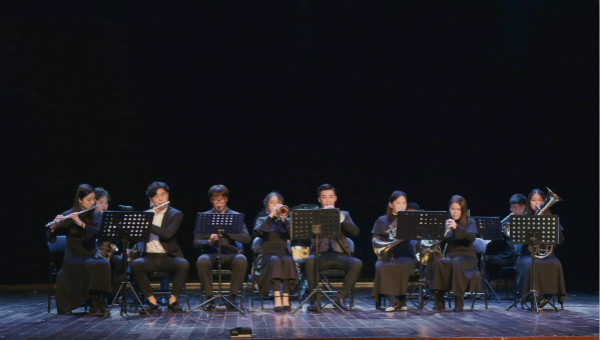 笛子独奏《春潮》婉转悠扬,清亮的音色将观众带入春日乌苏里江冰雪消融的美好意境中。西方经典歌曲《铃儿响叮当》由中国古典乐器琵琶创新演绎,演奏者快速拨动的指尖与琵琶特有音色让歌曲融入东方古典魅力。钢琴独奏《拉科齐进行曲》结合技巧与感情,用音符演绎民族英雄拉科齐的历史故事。萨克斯五重奏《Despacito》浓郁的拉丁风情让全场听众闻之沉醉。几位青年教师的加入更为本场演出添光加彩。