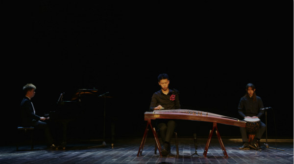 古筝独奏《行者》用钢琴与非洲鼓伴奏,将中国民族乐器与异域风情结合,开合有度、张弛分明的节奏赢得了观众的阵阵掌声。音乐学专业2017(2)班方泽早早来到现场观演出“我最喜欢《行者》独奏,这首曲子无论是情感还是技巧都表达的很到位,融入的其它乐器元素让人耳目一新。”