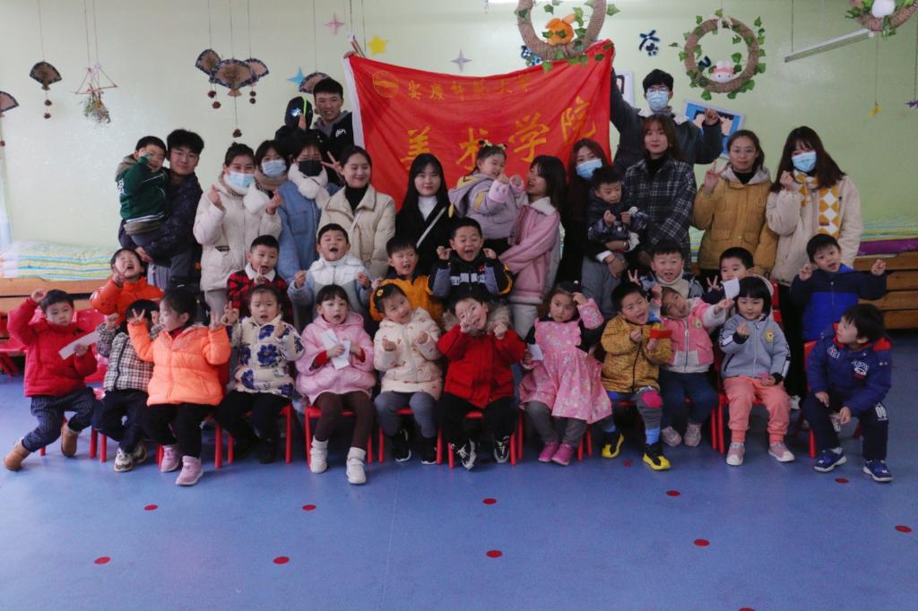 背上装满宣纸和墨汁的书包、拎着做手工用的编织绳、手臂还挎着塞满剪纸作品的帆布包……早上7点40分,美术学院弘美志愿服务队的16名学生志愿者就已经整装待发。经过40分钟的车程与20多分钟的步行,志愿者们准时来到了幼儿园。