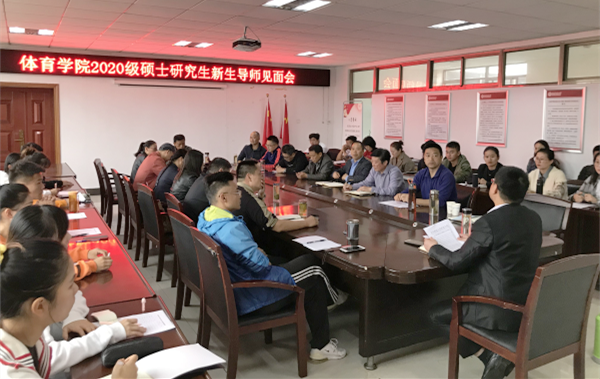 2020年10月14日下午,体育学院在体育馆会议室召开了2020级研究生导师见面会,体育学院全体硕士生导师和2020级全体硕士研究生参加了会议。会议由院长章翔主持。
