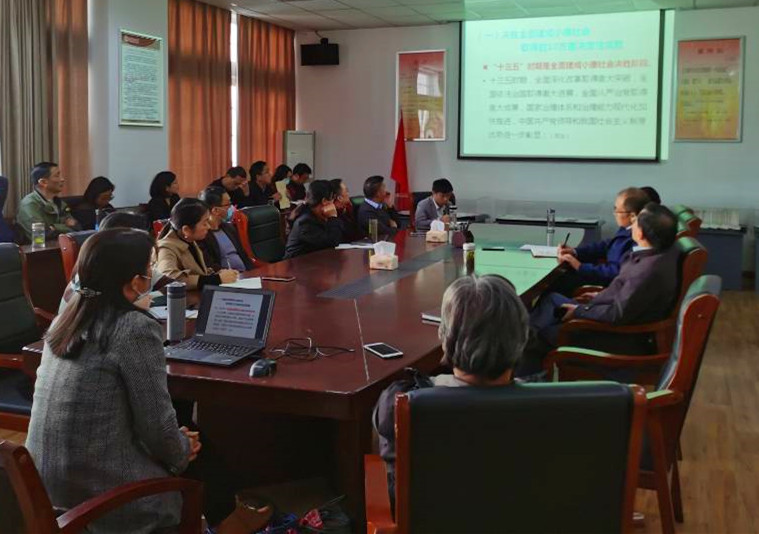 会上,思想政治教育系主任严仍昱教授带领大家学习了十九届五中全会精神,阐述了十九届五中全会的基本情况和重要意义,详细解读了《中共中央关于制定国民经济和社会发展第十四个五年规划和二〇三五年远景目标的建议》的主要内容。会议还学习了《深化新时代教育评价改革总体方案》和习近平在纪念中国人民志愿军抗美援朝出国作战70周年大会上的讲话。
