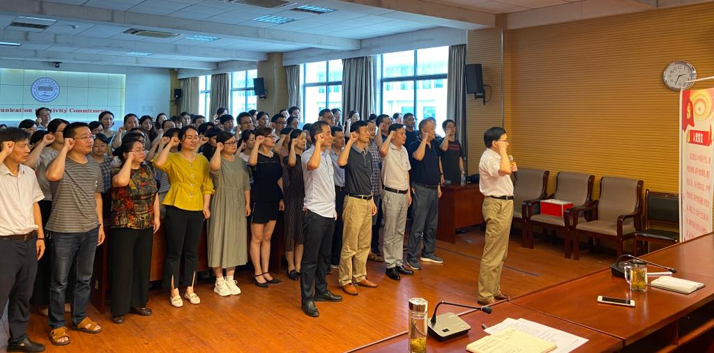 会上,学院党委书记郝涂根带领全体教师党员重温入党誓词。学院党委委员、院长王先荣宣读了党委“七一”表彰决定,对22名教师党员及4名学生党员授予“优秀共产党员”荣誉称号,并颁发了证书。