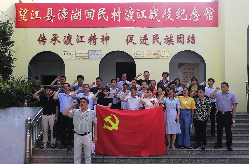 7月1日,机关评建办、学报、信息化建设与管理处、国资采购机关党委办等党支部赴全国爱国主义教育示范基地——望江县漳湖回民村渡江战役纪念馆,开展 “党史教育日”活动。参观学习中,在机关党委书记、黄梅剧艺术学院执行院长金根山同志的领誓下,大家庄严重温了入党誓词。