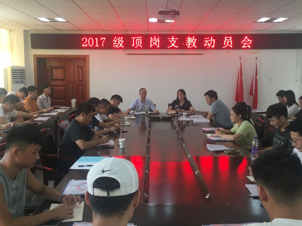 9月1日,体育学院召开2017级体育教育专业顶岗支教动员大会,体育学院党政领导、学校教育实习实训办公室负责人、教学办负责人、辅导员老师、指导教师、2017级体育教育专业全体顶岗支教学生参加会议。