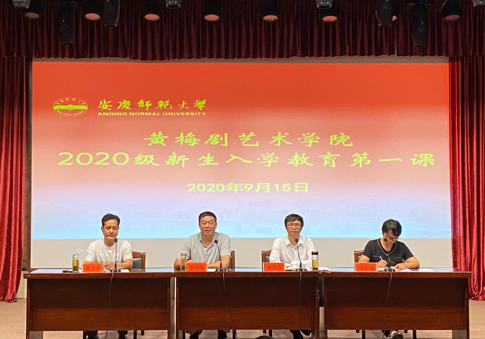 9月15日,黄梅剧艺术学院在菱湖校区图书馆一楼报告厅开展2020级新生入学教育第一课,学院全体领导班子、专职辅导员及2020级全体新生参加了活动。