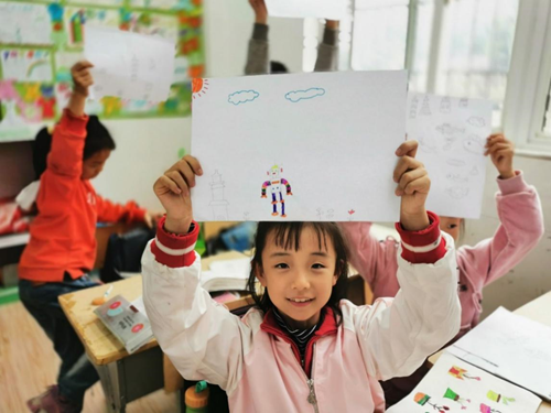 “小朋友们,你们知道什么是徽州文化吗?”课堂铃声响起,主讲人胡鹏问道。面对孩子们升起的强烈好奇心,主讲人以徽州建筑为代表开始讲述。为使孩子们更好地了解徽州文化,让徽州文化的魅力更大程度的印在孩子们心中,志愿者组成开展了绘画比赛。比赛伊始,孩子们便纷纷拿起画笔开始创作,画出他们心中的徽派建筑,画满各式建筑的画纸彰显了孩子们对徽派建筑的喜爱,他们开心地向志愿者展示画作。李晨同学在阐释他心中的徽派建筑时说:“徽派建筑就像大树的叶子一样,是徽州文化的优秀分支。”
