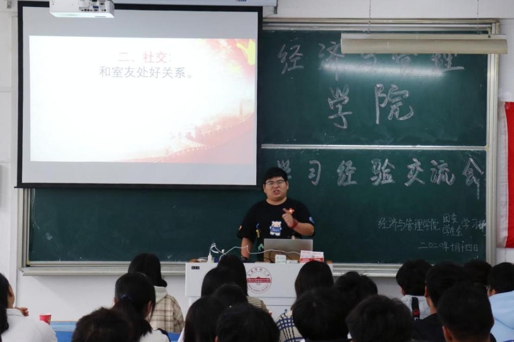 “学姐,如何充分利用好课余时间?我们专业都有哪些比赛可以准备?”10月14日,经济与管理学院团委学生会学习部在beat365官网龙山校区C203教室举办了学习经验交流会。来自2018级和2019级不同专业的五名优秀学生代表给大一新生们分享经验、答疑解惑。