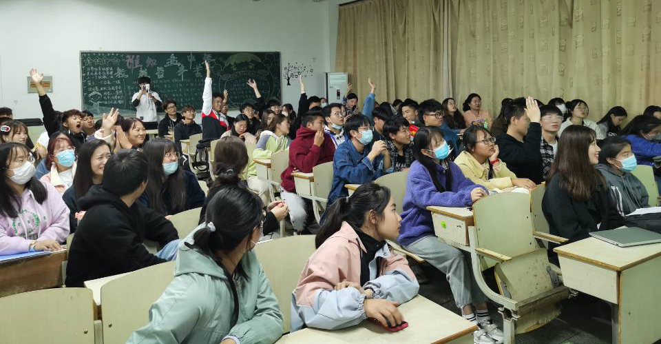 为进一步引领同学们了解四史,感受四史,贯彻落实习近平新时代中国特色社会主义思想,学习红色历史,弘扬红色精神。在每一个主题解说完毕后,都会进行一次“四史”知识问答环节,该院为此精心准备了小礼品。在问答过程中,同学们踊跃发言,积极互动,现场的抢答氛围感染了每一位参会人员。