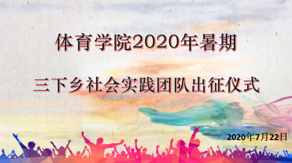 7月22日,体育学院2020年暑假“三下乡”社会实践团队出征仪式在线上举行。体育学院党委副书记高栋梁、专职辅导员、指导老师代表出席仪式,2020年暑期三下乡校院两级重点团队成员40余人参加出征仪式。