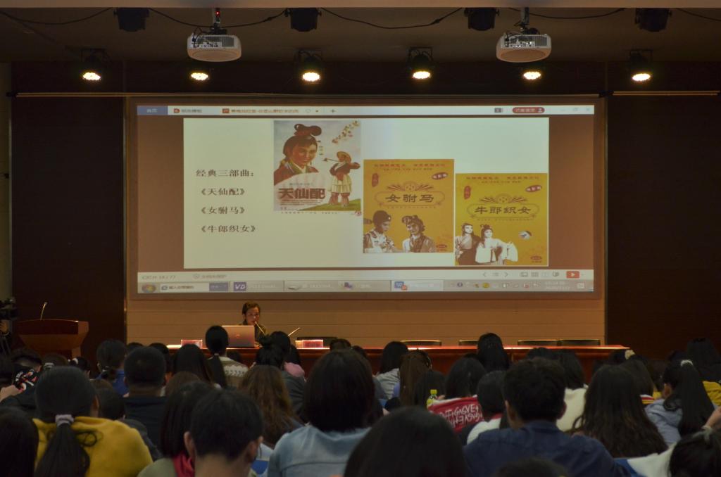 “一曲黄梅如山野的清风吹到人间。它是附着了前辈艺人生命的歌舞,凝结着一代又一代黄梅戏人的汗水与情怀,成为安庆的文化名片之一……”11月3日晚,龙山校区文津楼D111报告厅座无虚席,还有很多学生站着听讲座。