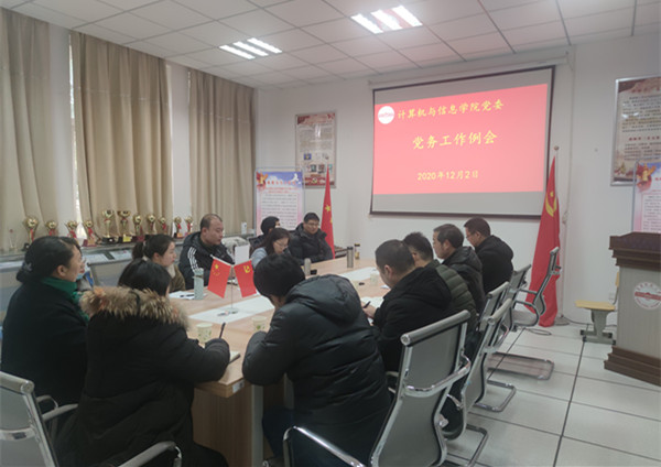为加强党务工作交流,进一步增强党建工作责任感和使命感,12月2日,计算机与信息学院在稼先楼会议室召开本学期党务工作例会,就党建工作进行专题研讨交流。学院全体党支部书记、教工支部委员参加了会议,会议由院党委书记陈银凤主持。