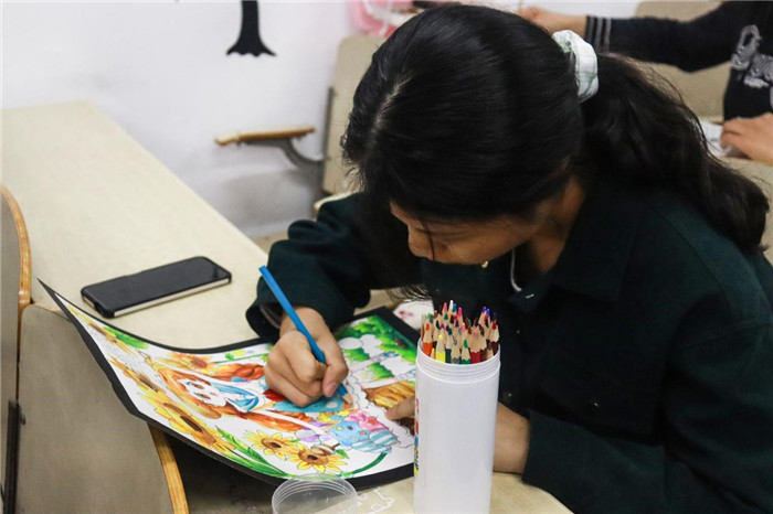 不同于书法组的白纸黑字,绘画组的色彩更加丰富。水粉、国画、素描、油画、漫画、钢笔画等等,各式各样的景物或人物跃然纸上,令人应接不暇。