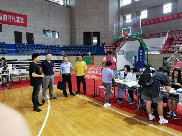 此次,学院创新迎新宣传方式,一改之前的纸质版宣传册,采用无纸化、网络化视频宣传迎新。宣传视频包括:学院简介、学校和学院领导介绍、新生辅导员介绍、学院创业之星、考研录取情况、学生会简介、安全知识须知等。同时,在报到现场,安排每个专业一男一女两名同学参与迎新工作,特意穿上专业特色的服装,体育教育专业(篮球服)、体育表演专业(舞蹈服)、运动康复专业(医护服),直观地呈现给20新生报到的地点。