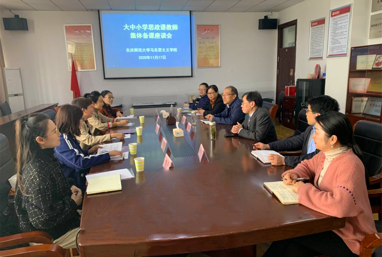 为了进一步贯彻落实中央办公厅、国务院办公厅《关于深化新时代学校思想政治理论课改革创新的若干意见》,11月17日下午,马克思主义学院召开大中小学思政课教师集体备课预备会议,马克思主义学院和安庆市第一中学、第四中学、人民路第一小学的思政课教师代表出席会议,会议由马克思主义学院院长罗本琦主持。