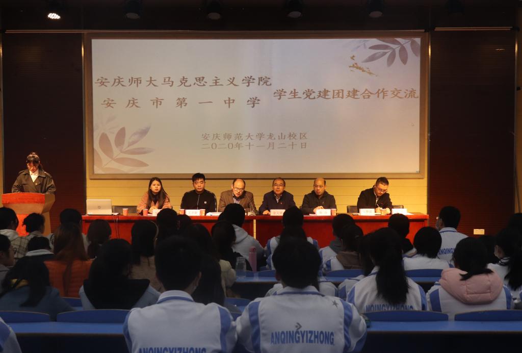 随后,马克思主义学院师生与安庆一中教师代表在文源楼B208展开工作交流。安庆一中德育部负责人介绍安庆一中的办学历史和学员的基本情况,马克思主义学院研究生党支部负责人讲解了发展党员的工作流程以及研究生党支部作为安徽省党建样板党支部建设情况。学院团委学生会成员向安庆一中学生代表详细介绍了学院各组织概况,并与安庆一中“青马班”学生代表就学习与生活开展了深入交流。