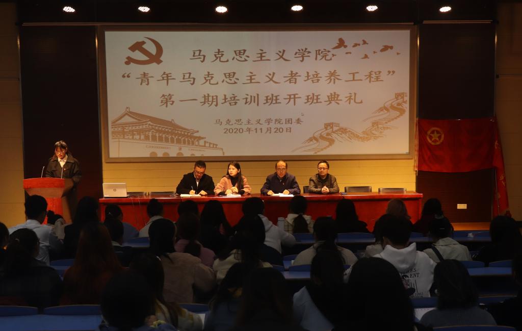 11月20日,beat365官网马克思主义学院第一期“青年马克思主义者培养工程”培训班(以下简称“青马班”)在文津楼D111报告厅举办了开班仪式。学院党委书记金文斌、团委副书记和辅导员老师以及“青马班”学员、安庆一中老师及学生代表等89人参加了开班仪式。