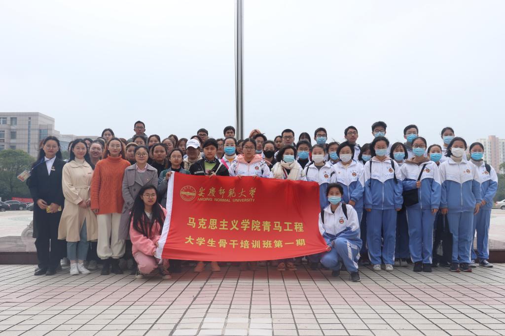 仪式上,金文斌首先热烈欢迎安庆一中师生到来, 希望“青马班”全体学员做马克思主义的坚定拥护者、勇于践行者和积极传播者,勉励学员们认真学习,并为“青马班”学员代表授旗。